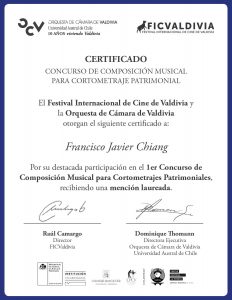 El día 4 de septiembre de 2020, en el marco del Festival Internacional de Cine de Valdivia fueron anunciado los premiados del Primer Concurso de Composición Musical para Cortometrajes Patrimoniales.
